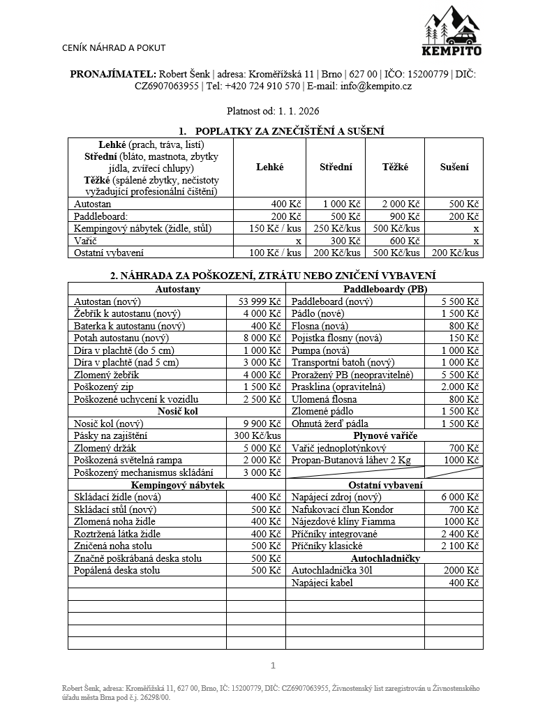A KEMPINGOVÉHO VYBAVENÍ V BRNĚ